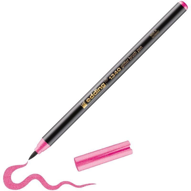 Glitter brush pen edding 1340 with water-based ink for decorative writing and calligraphy. The lightly glittering line gives the text a festive pearlescent appearance. Glitter brush markers are especially suitable for decorative writing on light paper (postcards, greeting cards, name tags, and messages). Flexible brush tip with a line width of 1-6 mm. Best stored tip down.