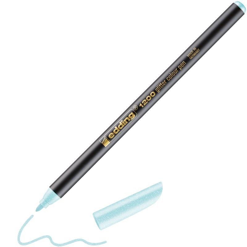 The glitter pen edding 1200 with water-based ink for decorative writing. The written line contains fine glitter that gives the text a festive pearlescent appearance. Glitter pens are especially suitable for decorative writing on light paper (postcards, greeting cards, name tags, and messages). Round tip with a line width of 1-3 mm. Store preferably tip down.