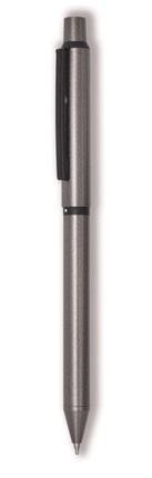 The Penac Multisync gift multifunction pen combines a blue and red ballpoint pen with a mechanical pencil. This elegant 3-in-1 pen in a metallic finish features a slim metal body, complemented by subtle matte black metal elements in its simple design. The individual writing instruments can be easily selected thanks to the high-quality 360° rotating mechanism (marks on the black strip indicate the currently selected type of writing instrument). The Penac Mach document ink (according to DIN ISO 12757/2) with low viscosity ensures smooth and fluid writing. The end of the pen conceals latex and PVC-free rubber. The mechanical pencil lead is HB 0.5 mm. Refills, including the eraser, are replaceable. Delivered in a paper gift box. Line width of the ballpoint pen: 0.35 mm. Made in Japan.