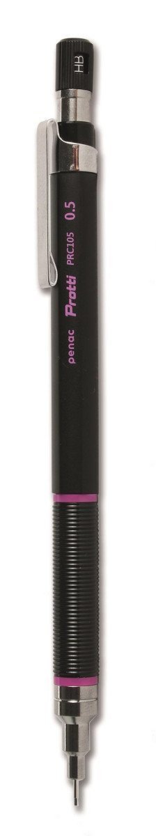 The Penac Protti mechanical pencil with a metal sleeve for precise lines when drafting, shading, sketching, writing, and drawing features a unique mechanism. When you need to advance the lead, simply press on the tip of the pencil and the lead will move forward automatically. The mechanism allows for easy advancement of the lead into the tip while also holding very short leads, maximizing their use. By pressing the tip against the surface, you release a lead length of 1 mm, which provides 5 meters of writing. The metal tip is fully retractable, protecting it from potential damage. On the pressing side of the pencil, you will find an indicator for the hardness of the inserted lead - by turning the grooved rubber cover to the appropriate position, you can select the hardness you are currently using in the pencil (B, HB, F, H, 2H, 3H). Non-slip grip in the form of grooving, metal clip, rubber free of silicone and PVC. Supplied in a paper box. Width: 0.5 mm. Made in Japan.