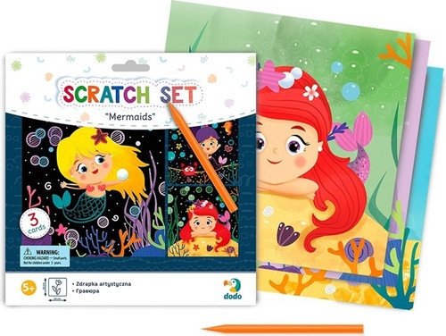 Scratch pictures DODO with cute mermaids. Supports the development of fine motor skills, hand-eye coordination, and creativity. - three square pictures with different themes; - you can scratch according to the lines or your own imagination; Contents of the package: 3 pictures with a colored bottom