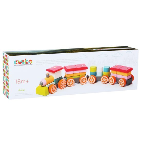 CUBIKA is a new brand of wooden toys made only from ecologically grown wood with very precise processing and appealing design. The train with three wagons is a wooden puzzle with 35 colorful pieces. The individual blocks must be arranged so that the train can set off with a full load on its journey. The CUBIKA toy range helps children primarily develop sensory-motor skills and abilities, logical thinking, creativity, imagination, and various cognitive knowledge. The toys are made from the highest quality maple and beech, and high-quality water-based paints are also used for coloring, which are completely safe for children and have no odor. All products of this brand have the German TÜV certificate and are made according to the European toy safety standard EN 71. Not suitable for children under 18 months. Made in Europe.