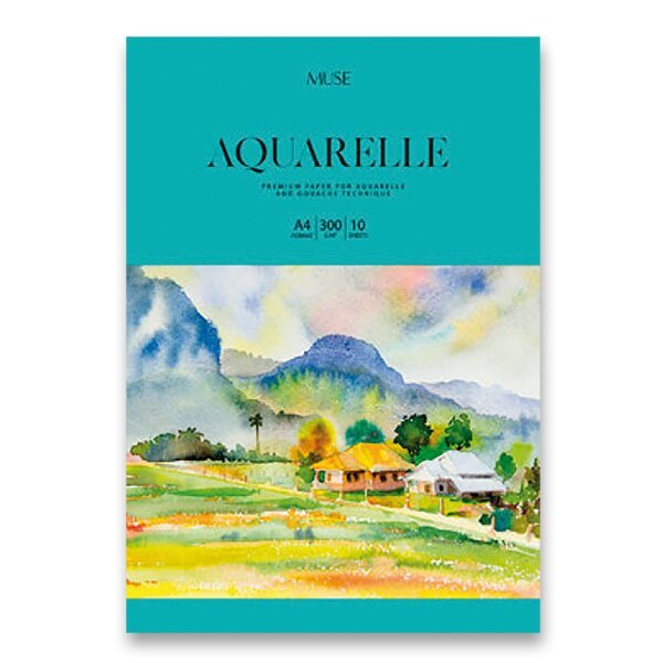 White drawing cardboard (commonly known as "quarter sheets"), in A4+ format (225 x 315 mm). The Aquarelle series (300 g/m2 paper) is ideal for both dry and wet techniques, such as watercolor and gouache. Individual sheets of cardboard are stored in cardboard covers with artistic motifs.