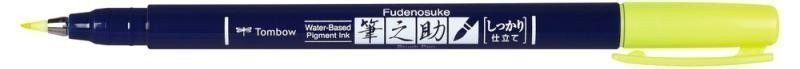 Fix Fudenosuke (brush pen) with an elastic brush tip (hard type). The line varies from thin to thick depending on the pressure applied to the tip. The Fix Fudenosuke with a hard tip is particularly suitable for writing small letters. Ideal for calligraphy, handwritten signs, sketching, doodling, and much more. The ink is water-based and odorless. Ink color: neon yellow.