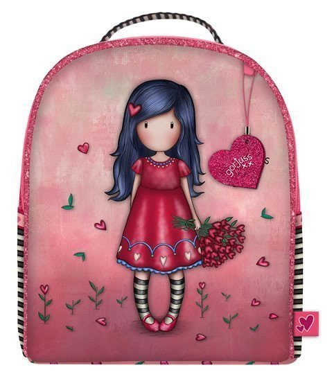 The backpack has one main compartment that closes with a zipper. Inside, there is one small pocket that can be used for a mobile phone, for example. The straps are adjustable according to your needs, and there is a small loop for better carrying in hand. The Gorjuss doll motif is printed on sparkling fabric. Dimensions: 20 x 22 x 10 cm.