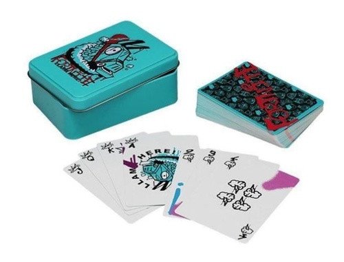 Playing cards in a metal box with a licensed design. The package contains 54 cards.