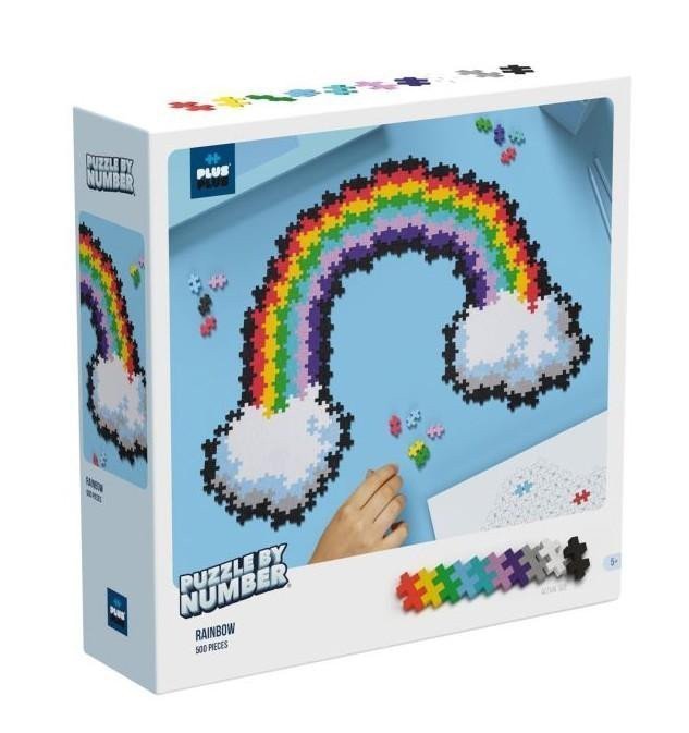 The PLUS-PLUS Build by Numbers Rainbow Creative Set contains 500 pieces. Build a beautifully colored mosaic of a rainbow and clouds by assembling colors according to the numbers. You can use the images as decorations or create new designs. For children aged 5 and up.