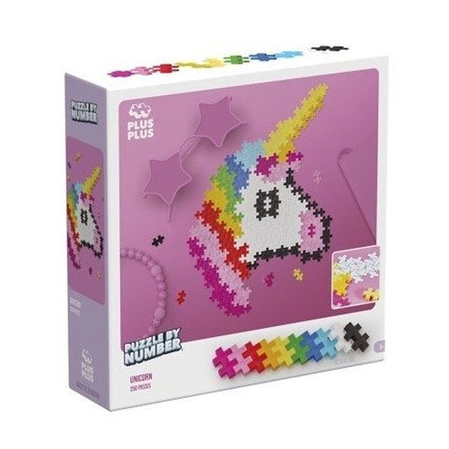 The PLUS-PLUS Build by Numbers Unicorn Creative Set contains 250 pieces. Build a beautifully colored mosaic of a unicorn by assembling colors according to the numbers. You can use the images as decorations or create new designs. For children aged 5 and up.