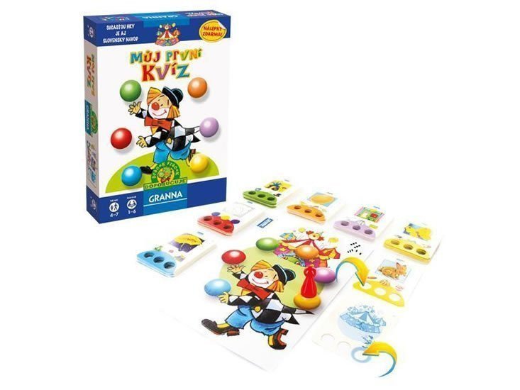 On the card is a parrot. Do you know what a parrot likes the most? Yogurt, soup, or seeds? If you already know which answer is correct, insert your little finger into the hole under the corresponding picture... The unique concept of 90 playing cards, along with the traditionally high level of artistic processing, allows children to solve tasks and verify their answers without needing to be able to read. The themes of the questions relate to everyday life; the game develops vocabulary, exercises observational skills and memory, and encourages independent thinking. Instructions are available in Czech and Slovak. It can be played by one child! The game from the series GAMES AND FUN OF DRAGON FRÁČEK is intended for 1 to 6 players aged 4 to 7. Thanks to the unique concept of 90 playing cards, children can solve tasks and verify their answers without needing to be able to read. The themes of the questions relate to everyday life, and the answers are presented in the form of pictures. The player answers by inserting their little finger into the hole under the corresponding picture and then flips the card. If there is a clown picture above their finger, it means their answer was correct, and they can place the card in front of them. The game, which is characterized by a traditionally high level of artistic processing, develops vocabulary, exercises observational skills and memory, and supports...