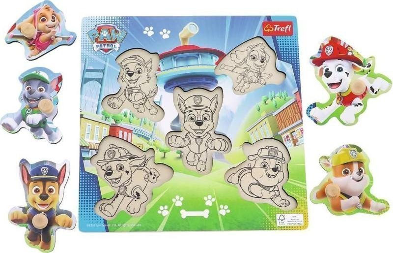 Insert puzzle for the youngest with pictures of favorite Paw Patrol heroes. The child tries to find the correct picture according to the outlines and shapes (developing imagination and logical thinking) and place it in the correct hole (developing fine motor skills). The insert puzzle contains five pieces with handles and background images.