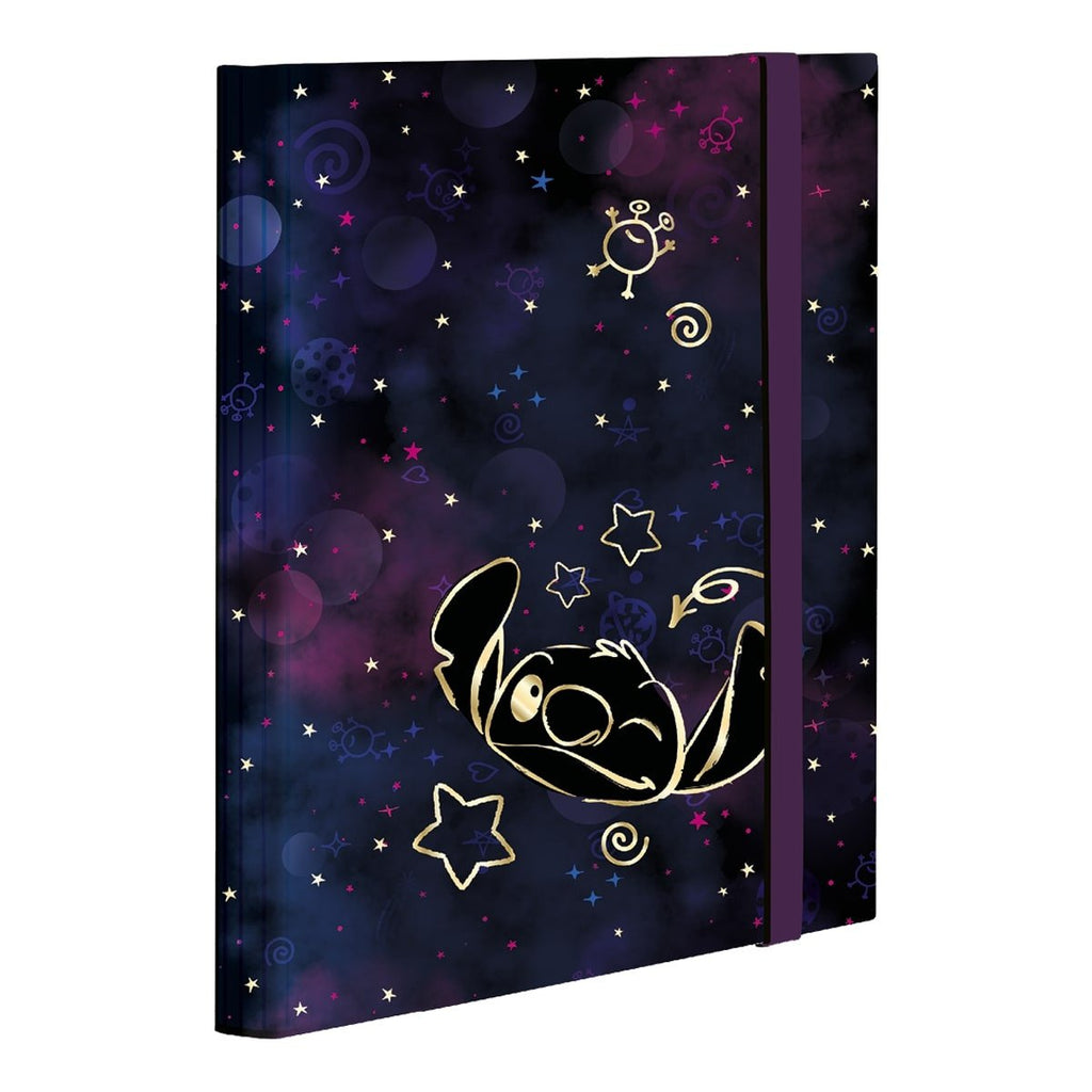 School box with a flat rubber band and an internal fixing flap, coordinated with the Stitch Gold collection. Quality and durable design suitable for daily transport of school notebooks and other documents.