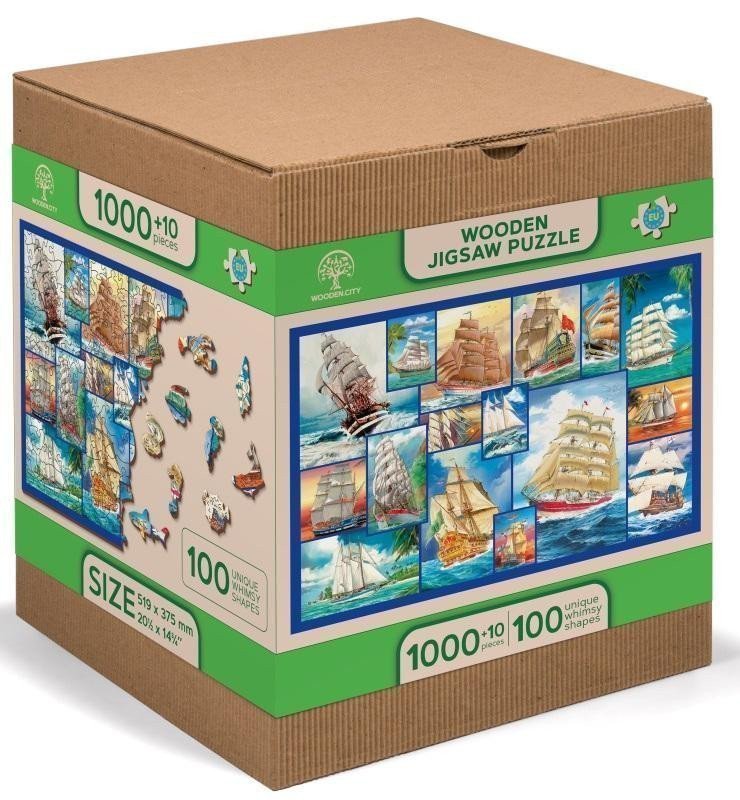 Wooden laser-cut puzzles with specially shaped pieces. Some pieces are made in the shape of animals, buildings, or objects, with the final result enhanced by laser-improved details. Each of these pieces can appear individually as small figures. Assembling puzzles from various pieces is more difficult and challenging than assembling classic puzzles. Additionally, the puzzles are double-sided, allowing them to be arranged either by photo (front side) or by shape (back side with a pattern). If you're looking for the perfect gift, 3D puzzles are a timeless and always the right gift for any occasion! Crazy Animals 3D Puzzle includes many unique double-sided figures. Each of the 200 pieces is different. Arranged puzzles can become an interesting decoration for your interior. The brand also considers ecology, so you won't find any plastic packaging with these products. Material: 100% safe for children. Number of pieces: 1010. Thickness: 3-4 mm. Dimensions when assembled: 375mm x 510mm. Assembly time: 120-180 min. Age: 12+