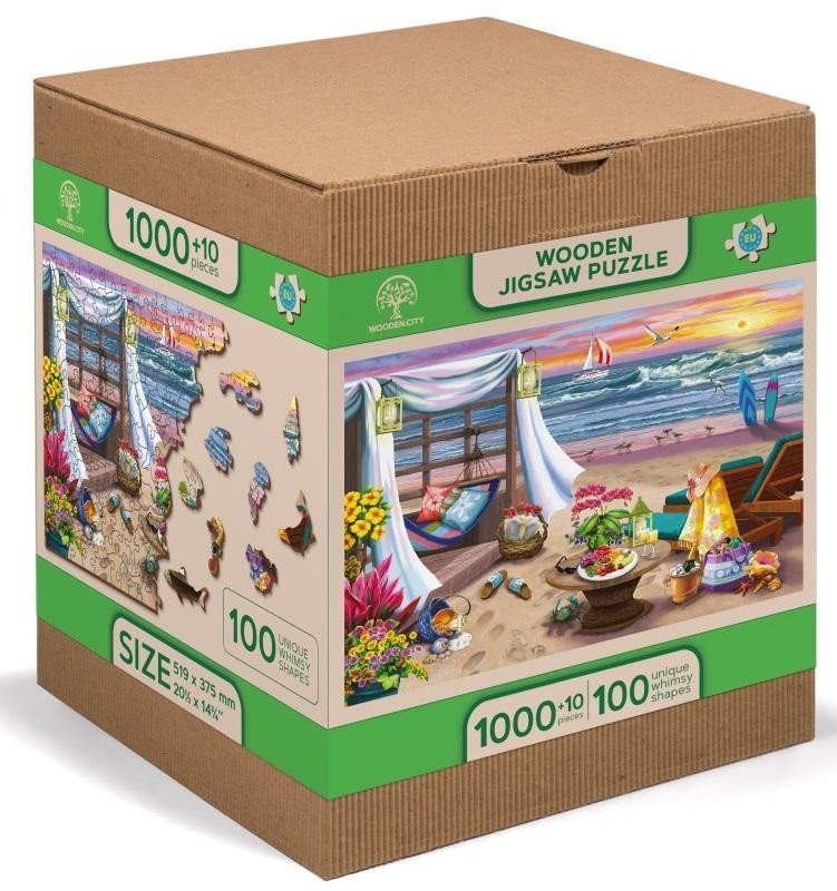 Wooden laser-cut puzzles with specially shaped pieces. Some pieces are made in the shape of animals, buildings, or objects, and their final result is enhanced by laser-improved details. Each of these pieces can appear individually as small figures. Assembling puzzles from different pieces is more difficult and demanding than assembling classic puzzles. Additionally, the puzzles are double-sided, allowing them to be arranged either by photo (front side) or by shape (back side with a pattern). If you are looking for the perfect gift, 3D Puzzles are a timeless and always the right gift for any occasion! Crazy Animals 3D Puzzle contains many unique double-sided figures. Each of the 200 pieces is different. Arranged puzzles can become an interesting decoration for your interior. The brand also keeps ecology in mind, so you won't find any plastic packaging with these products. Material: 100% safe for children. Number of pieces: 1010. Thickness: 3-4 mm. Dimensions when assembled: 375mm x 510mm. Assembly time: 120-180 min. Age: 12+