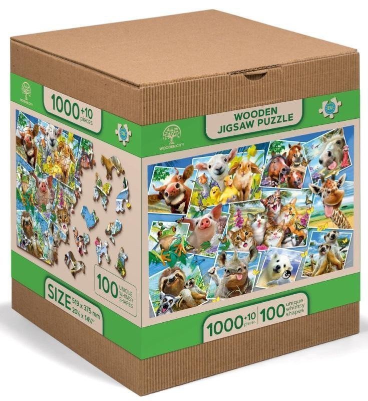 Wooden laser-cut puzzles with specially shaped pieces. Some pieces are made in the shape of animals, buildings, or objects, and their final result is enhanced by laser-improved details. Each of these pieces can appear individually as small figures. Assembling puzzles from different pieces is more difficult and challenging than assembling classic puzzles. Additionally, the puzzles are double-sided, allowing them to be arranged either by the photograph (front side) or by shape (the back side has a pattern). If you are looking for the perfect gift, puzzles are a timeless and always the right gift for any occasion! The puzzle contains many unique double-sided figures. Each of the 200 pieces is different. The arranged puzzle can become an interesting decoration for your interior. The brand also considers ecology, so you won't find any plastic packaging with these products. Material: 100% safe for children. Number of pieces: 1010. Thickness: 3-4 mm. Dimensions when assembled: 375mm x 510mm. Assembly time: 120-180 min. Age: 12+