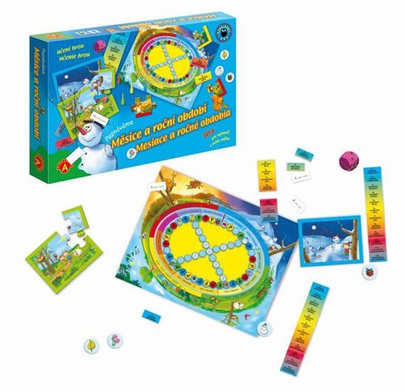 The educational board game 'Months and Seasons' guarantees great fun and many experiences for both children aged 5 and adults who will accompany them on adventures in summer and winter. Children will learn the names and order of the months and their connections. It is very important for children that during the game they learn the names and order of the months and their connection with the consecutive seasons. The same applies to the days of the week, which they learn during the fun game. In addition to the game board, figures, and a six-sided die, the game uses many other attractive pieces - including puzzles that present the 4 seasons - making the game very colorful. The player rolls the die and moves their figure along the path according to the number of points rolled. Each player walking along the path has the opportunity to earn various rewards during the game. The goal of the game is to collect as many points as possible for the rewards gathered while moving along the path on the game board. The player who collects the most rewards wins. The game is designed for 2-4 players aged 5 and is an excellent preparation for preschoolers or first graders. It is produced in a Czech-Slovak version, so children and parents can familiarize themselves with the differences in terminology between the two nations. The package includes: game board - 1 piece, colored figures - 4…