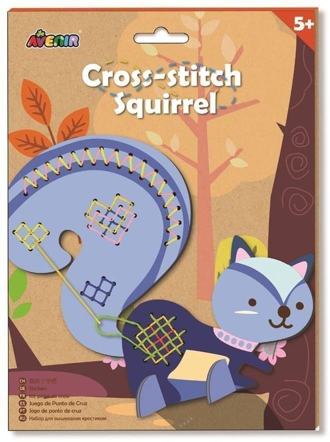 Create a beautiful masterpiece with a pre-cut squirrel template. Simply embroider with colorful thread using cross-stitch on the perforated template, and then you can display it.