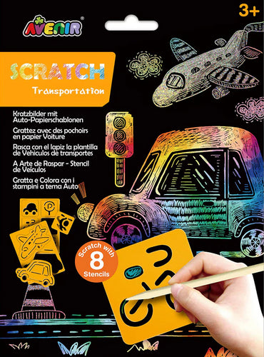 A great craft set for little kids. This fun set combines scratch drawing and stencils. Use 8 stencils with many different pictures to create magical images. Age: 3+
