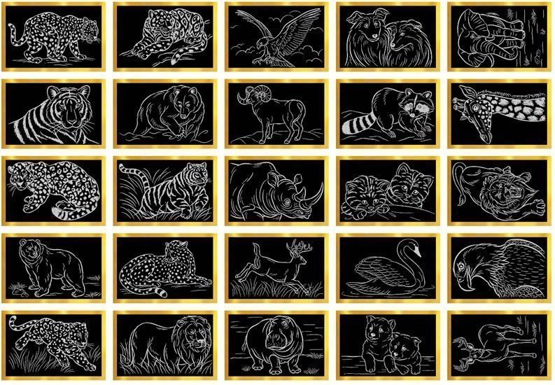 Škrabací obrázky se zlatým podkladem 15 x 10 cm