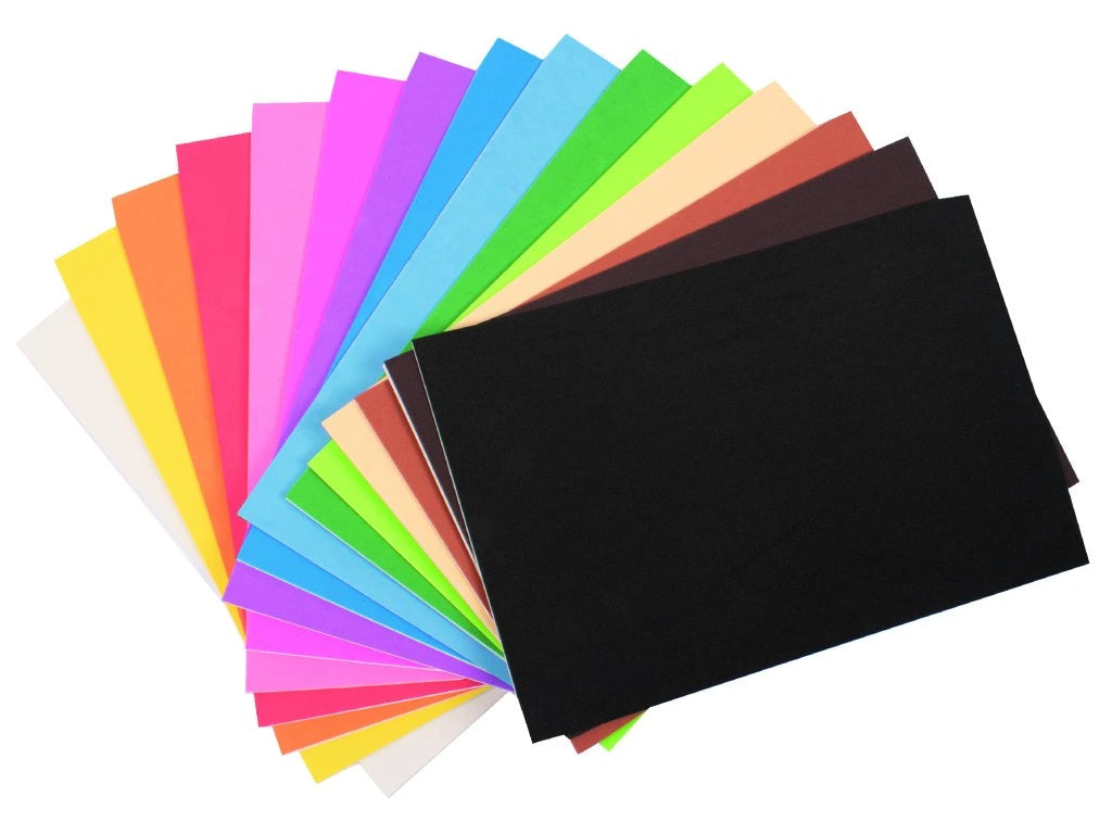 Colorful foam sheets - self-adhesive, basic colors, 15 pieces in a package, thickness approximately 2 mm.