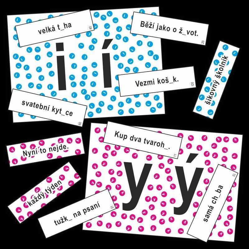 Phrases on 500 cards for practicing writing I, Í, Y, Ý after soft and hard consonants. It also includes 1 set of mats - Syllables soft and hard - mats.