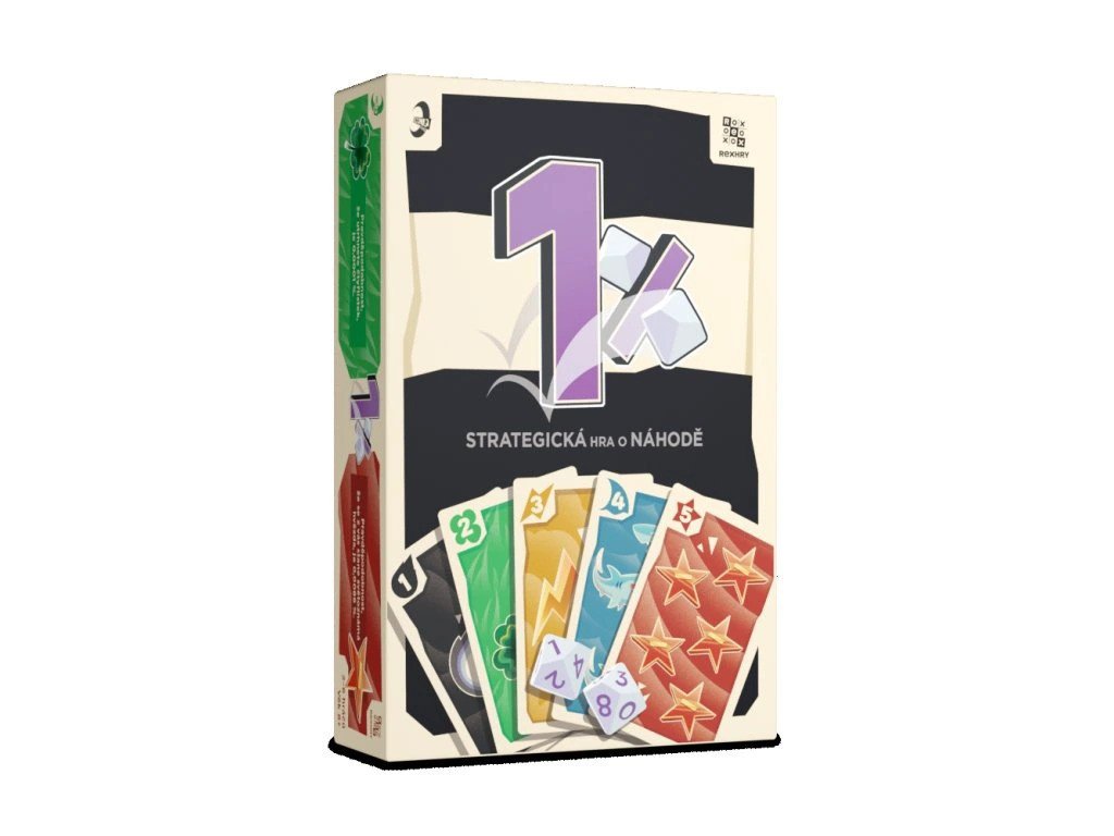 1%: A Strategic Game of Chance is a fun card game with dice! At the beginning, your chances of winning are exactly one percent. You must roll two zeros on two ten-sided dice. However, if you can accurately guess what your opponents have in their hands, you can increase your chances by gaining special cards! Can you outsmart your opponents and be the first to roll what you have on the dice?