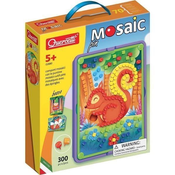 Educational benefits: - fine motor skills - hand-eye coordination - creative thinking. Age: from 5 years. Package contents: 1 storage basket, 1 foam pegboard, 1 holding frame, 8 picture cards with forest themes, 300 colored pegs in 2 shapes and 6 colors.