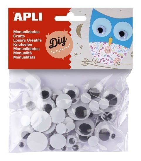 APLI oči kulaté mix velikostí nelepicí - černé 75 ks
