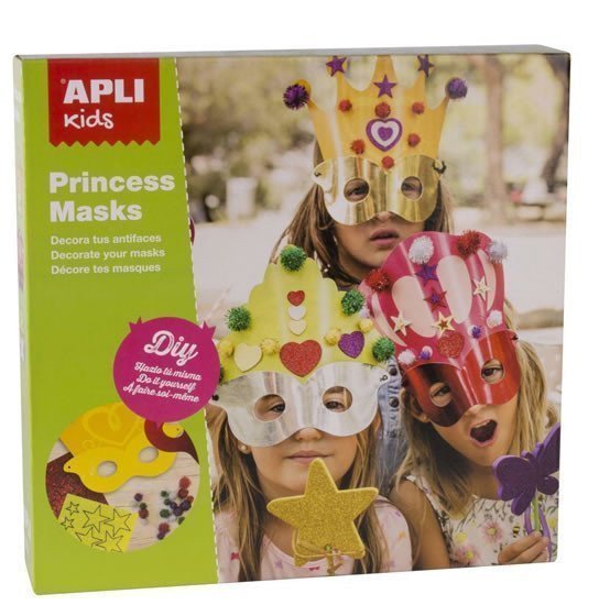 Fun crafting of a crown for a princess. Self-adhesive pieces for easy assembly. For creative crafting by the child. The package includes: three cardboard headbands, magic wands, foam details, and pom-poms.