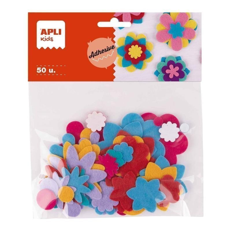 Felt in the shape of flowers, a mix of colors and sizes. Suitable for creative activities and decorations. Can also be glued using a hot glue gun. •dimensions: 2-5 mm •flexible and adhesive •color mix: blue, purple, orange, red, pink, green •permanently adhesive •packaging: 50 pcs