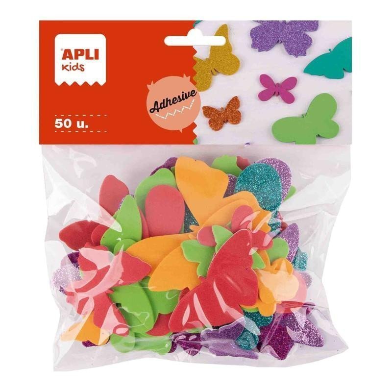 Foam shapes of butterflies, a mix of colors and sizes. Some with a glitter effect. Suitable for creative activities and decorations. •material: EVA •mix of sizes •glitter effect: purple, blue, pink •color mix: green, red, orange •permanently adhesive •packaging: 50 pcs