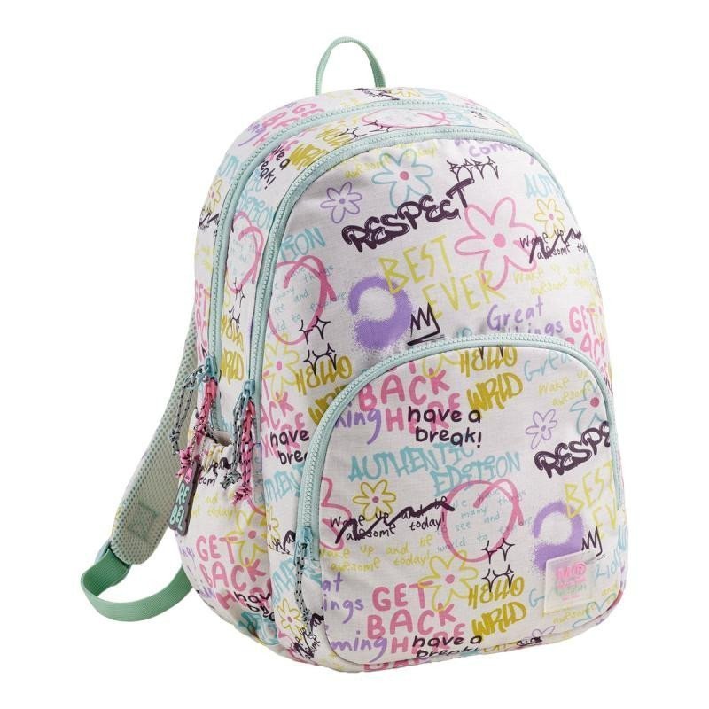 Modern, lightweight backpack in a colorful design for all teenage girls. The division into three pockets provides ample space for school and personal items. The recycled durable material extends the lifespan, and reinforced supports at the bottom protect the backpack from damage and dirt. •dimensions: 410 × 280 × 165 mm •material: recycled polyester (rPET) •3 zippered pockets, mesh pocket for small items •2 open side pockets for bottles