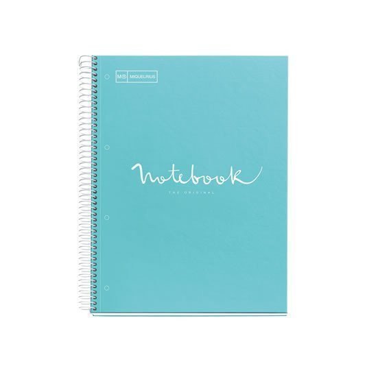 Trendy notebook with glossy covers made of laminated cardboard and spiral binding. 90 g paper, 80 sheets. Highlighted header, perforation for binder insertion, micro-perforation for easy sheet removal. The edges of the pages are in the color of the binding. Format: A4. Inner sheets: dotted. FSC Mix Credit certification.