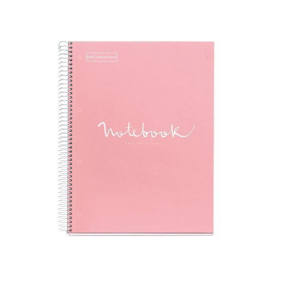 Trendy notebook with glossy covers made of laminated cardboard and spiral binding. 90 g paper, 80 sheets. Highlighted header, perforation for binder insertion, micro-perforation for easy sheet removal. The edges of the pages are in the color of the binding. Format: A4. Inner sheets: dotted. FSC Mix Credit certification.