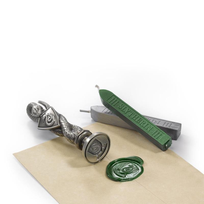 Slytherin sealing set. The package includes a metal seal with the Slytherin crest and 2 colored waxes.