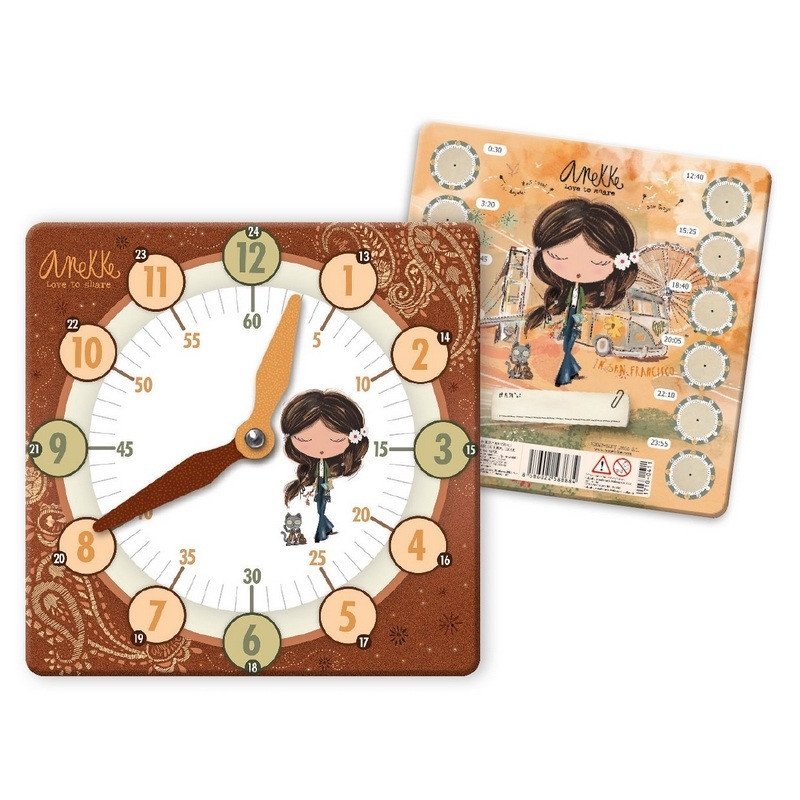 Paper children's clock for learning with a design of the well-known girl Anekke from the workshop of the Spanish designer.