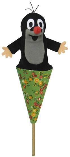Medium cone puppet of Krteček, textile, operated by a wooden stick. Not suitable for children under 3 years, risk of puncture.