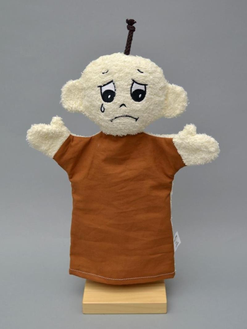 Textile puppet representing the emotion of sadness, suitable for psychological counseling, special educators, teachers in kindergartens and children's groups, as well as for home play. Made from natural materials. The face is embroidered, the heads are softly stuffed, and the entire puppet is very pleasant to the touch. Washable. Size approximately 30cm. Certified as a toy (EN71). Handcrafted in the Czech Republic.