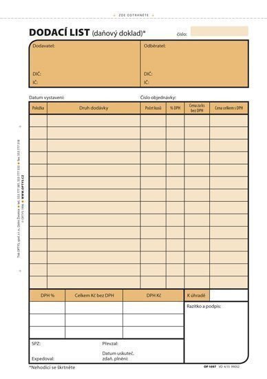Dodací list, A5, 100 listů, perforace v horní části tiskopisu,NCR