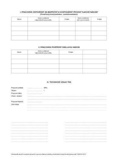 Záznamník o provozu tlakové nádoby, A4, 16 listů