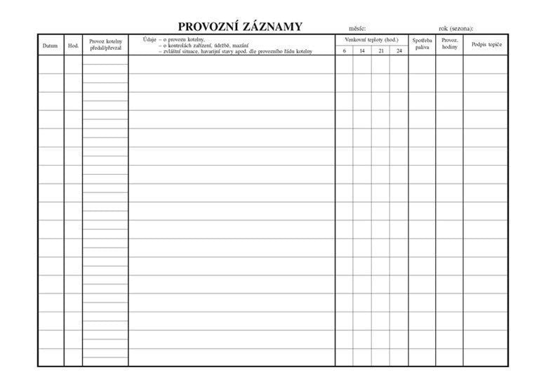 Operational diary of the gas boiler room - non-carbonless form - unnumbered - A4 format - yellow cover - block of 28 sheets