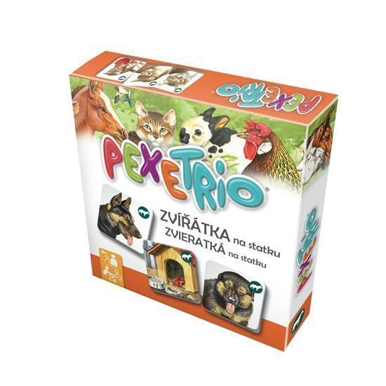 Pexetrio FARM ANIMALS is an educational and entertaining game where you will learn to name domestic animals and their young, recognize their environment, and their products. The enhanced memory game offers several game variants. Pexetrio FARM ANIMALS are fun games inspired by memory games that also educate children. Players will learn to name and recognize domestic animals and their young, understand their environment, and their products, according to the motto 'learning through play.' In addition to helping players recognize various farm animals in a fun way, the game also aids in developing their logical thinking and training their memory by searching for sets of cards with the same animal species. The game includes durable cards made of thick cardboard measuring 58 x 58 mm, game sheets for several variants of the supplementary game LOTO-TRIO for the youngest players, and a mini encyclopedia that contains basic information about each animal species and instructions for all game variants. The principle of the game allows for different game variants to be used for players of various ages. The game can be played by the youngest children from 2-3 years old (see the game LOTO-TRIO), preschoolers (PEXE-DUO), school-aged children, teenagers, as well as adult players and seniors. In the game, THREE cards are turned over and searched for...