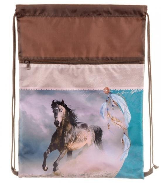 Gym bags are a practical accessory for school backpacks for storing slippers or gym clothes. The water-repellent sturdy material keeps items dry. The zip pocket separates shoes from other clothing. The drawstring connected to the bottom transforms the bag into a small backpack.