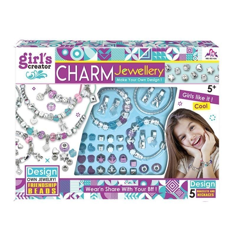 Jewelry-making kit suitable for ages 5 and up. Includes: beads, pendant, strings.