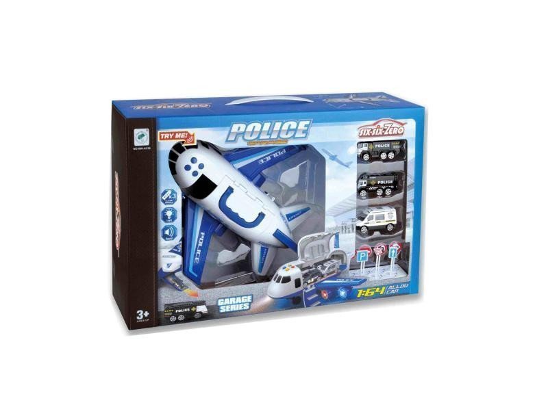 Playset with light and sound effects. The package includes 3 metal cars 1:64 with a pull-back mechanism. Opening cargo space on the airplane. The airplane is easily portable thanks to its handle, and the stairs can be unfolded.