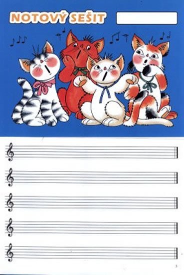 Notový sešit (obrázek: kočičky,16str.) širší linky