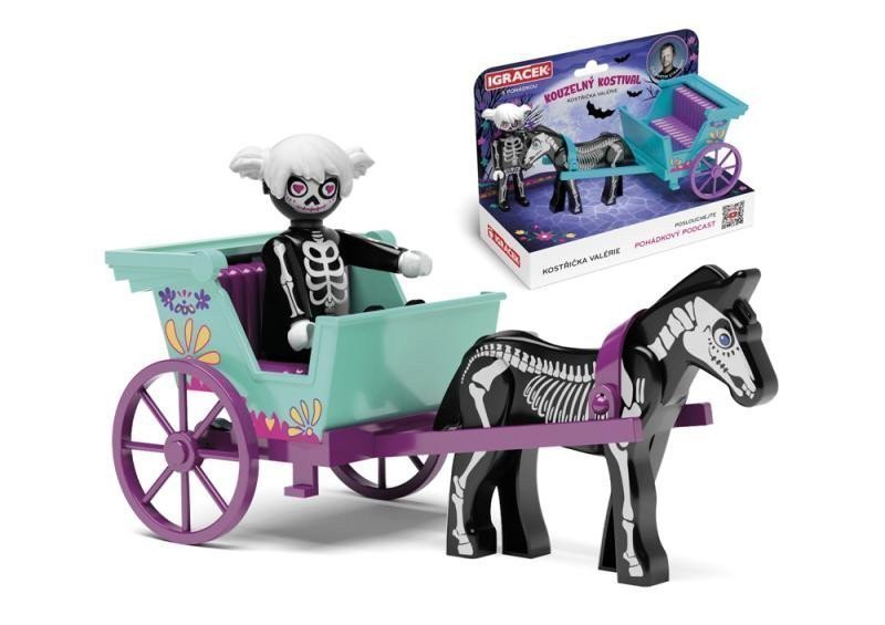 The Igráček figure of Valérie the Skeleton sets off with her pony Bonbon to find a cure for her dad. This innovative connection of a physical toy with the podcast fairy tale 'Kouzelný kostival' narrated by actor Martin Stránský develops children's imagination and fine motor skills. Made in the Czech Republic.