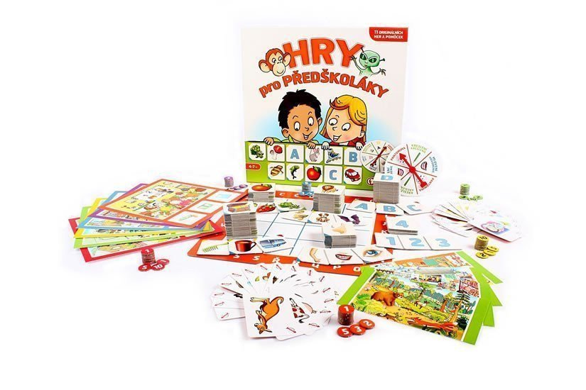 The collection of original yet tested games builds on the success of the title My First Games. You can look forward to a total of 11 original tasks with a very diverse focus that will facilitate preparation for school and help children succeed in it. The games for preschoolers, similar to My First Games, offer a thematic and well-thought-out set of games for the subsequent age group of children from four years old, who will fully utilize the wide range of 11 educational games. These are designed so that children can acquire a variety of skills while playing. The character of each game is based on different focuses, including memory training, perception, decision-making, speed, spatial orientation, attention, vocabulary, argumentation, logical thinking, and foresight. The content itself is very diverse. Children have at their disposal a set of 32 playing cards, 162 square cards, 6 large LOTO cards, 4 thematic cards, a spatial grid, a double-sided target with an arrow, and a set of tokens. The contents of the package are rich not only in terms of the equipment itself but also due to the thoughtful system of options for the universal use of tools for multiple games and tasks, allowing for the play of 11 completely different games with various focuses and settings...