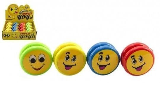 Smiley face yo-yo plastic 6cm mix of types in a bag 12pcs in a box. More colors - random selection.
