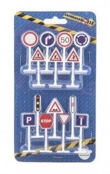 Children learn to recognize the most famous traffic signs. It makes the game and education about navigating traffic more attractive for kids. This set of signs is a must-have for any young traffic participant! The package contains 14 plastic traffic signs, each 5 cm tall. Package dimensions: 12 × 21 × 2 cm. Suitable for children aged 3 and up.