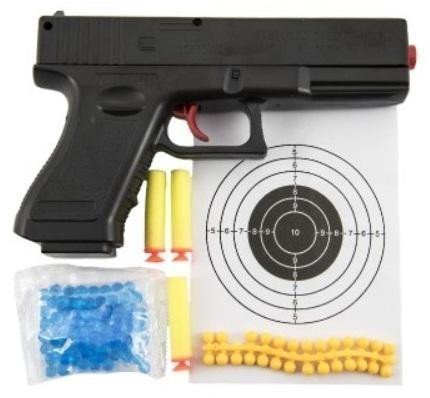 Playful fun primarily for boys! The foam dart gun, water, and rubber balls will entertain every little gunslinger. Load the balls, cock it, aim, and shoot. The size of the balls is 6 mm. Gun dimensions: 20 cm Box dimensions: 23 x 15 x 4 cm. Suitable for children aged 8 and up.